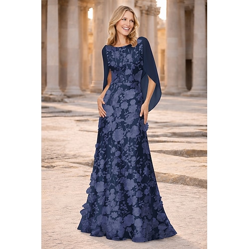 Linea ad A Lunghezza al pavimento Abito da invitata a nozze Vestito in Chiffon Abito da cerimonia per signora Senza Maniche Scollo a Barca Elegante Vintage Semplice Formale Chiffon Pizzo Scialli con