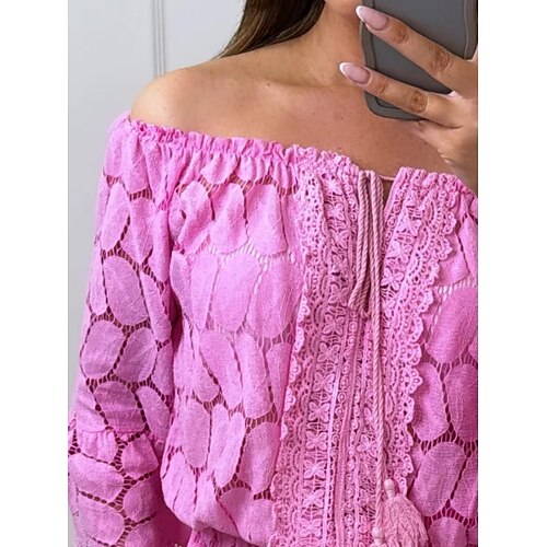 Per donna Mini Abito Abito Bianco Abito in Pizzo Vestito Casual Moda Moderno All'aperto Vacanza Uscire Vestibilità regolare Semplice Manica Lunga Senza Spalle Rosa Estate Primavera