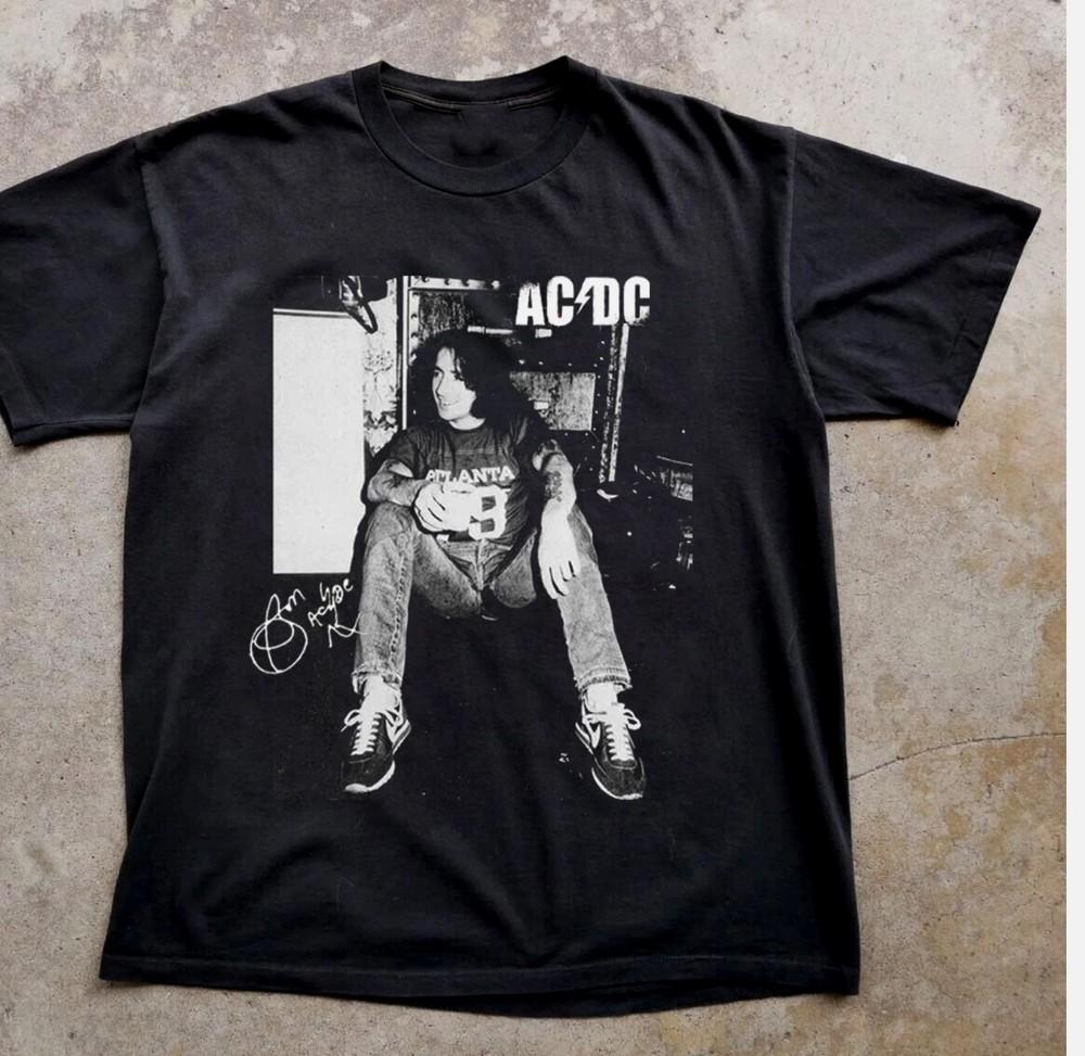 NEW RARE ACDC Bon Scott Classic Short Sleeve Black All Size Gift Shirt Unisex T-Shirt cm