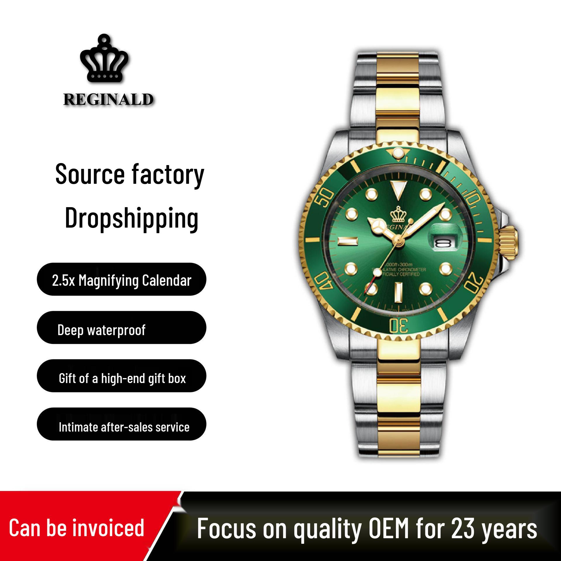 Men's Green Submariner Date Stainless Steel Watch – High-End Minimalist, Waterproof, Rotating Bezel, Student Sports Design