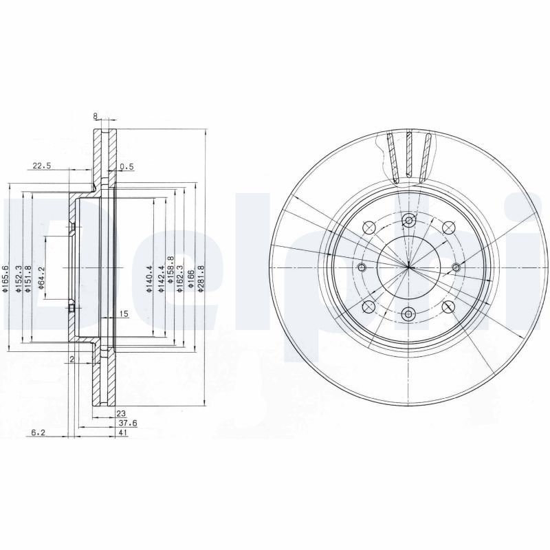 DELPHI Bremsscheibe vorne rechts links belüftet 282mm für HONDA 45251-ST3-E60 BG3589
