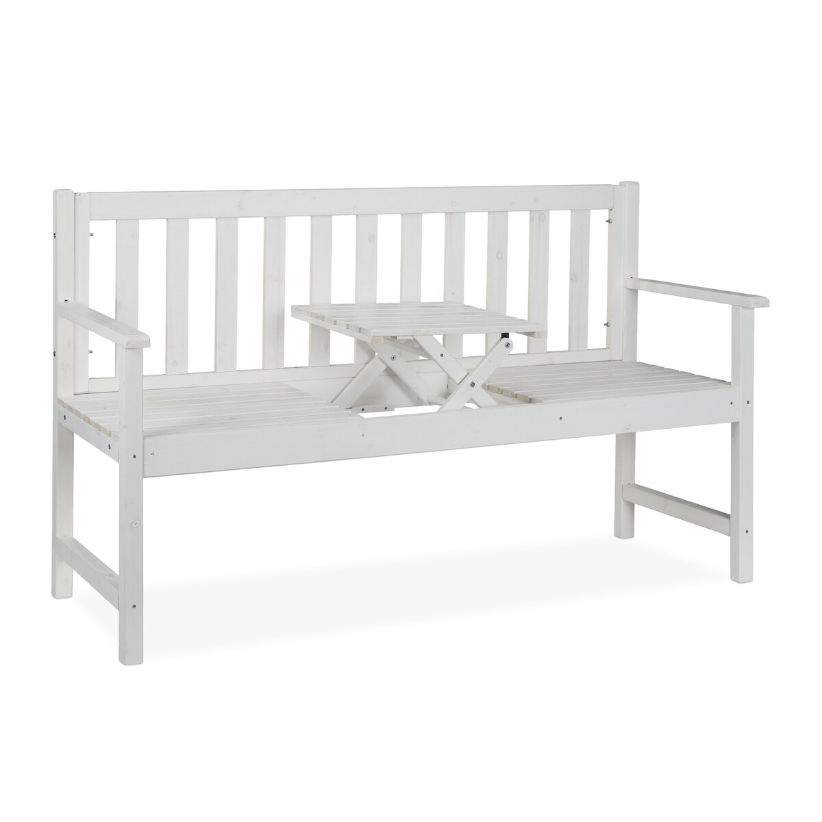 Relaxdays Gartenbank mit integriertem Tisch, 3 Sitzer, robuste Holz Sitzbank, Garten & Balkon, HBT: 90x152x56 cm, weiß