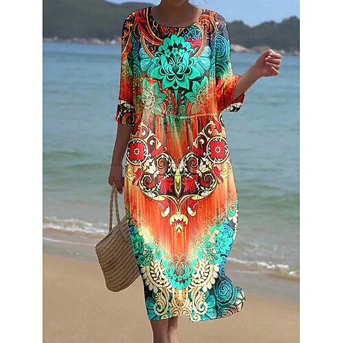 Per donna Abito Midi Vestito Casual Abito Stampato Moda Moderno Quotidiano Spiaggia Weekend Vestibilità regolare Grafico Manica 3/4 Girocollo Verde Grigio Estate Primavera Autunno