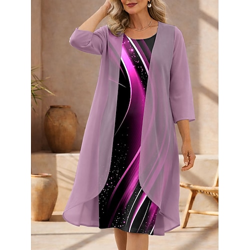 Per donna Insieme del vestito Abito a Tubino Abito Estivo Elegante Grafico Geometrico Stratificato Stampato Abito Midi Manica 3/4 Girocollo Quotidiano Vacanza Blu Viola Verde Estate Primavera