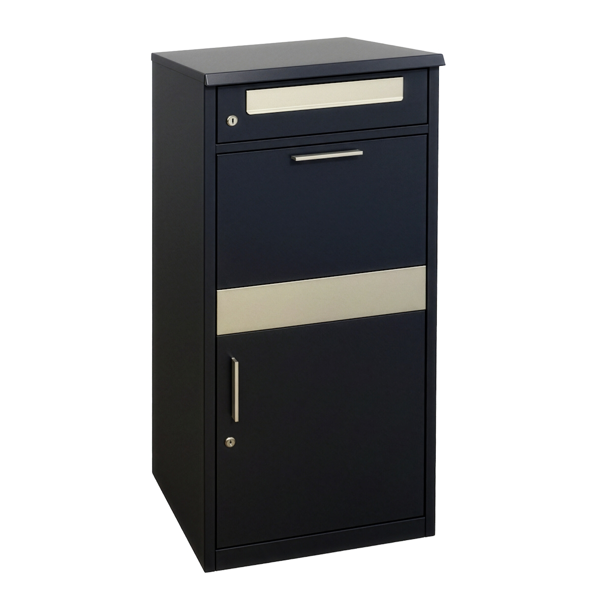Relaxdays Briefkasten mit Paketfach, 4 Schlüssel, HxBxT: 112 x 50 x 37 cm, Eisen & Edelstahl, Postkasten, schwarz/silber
