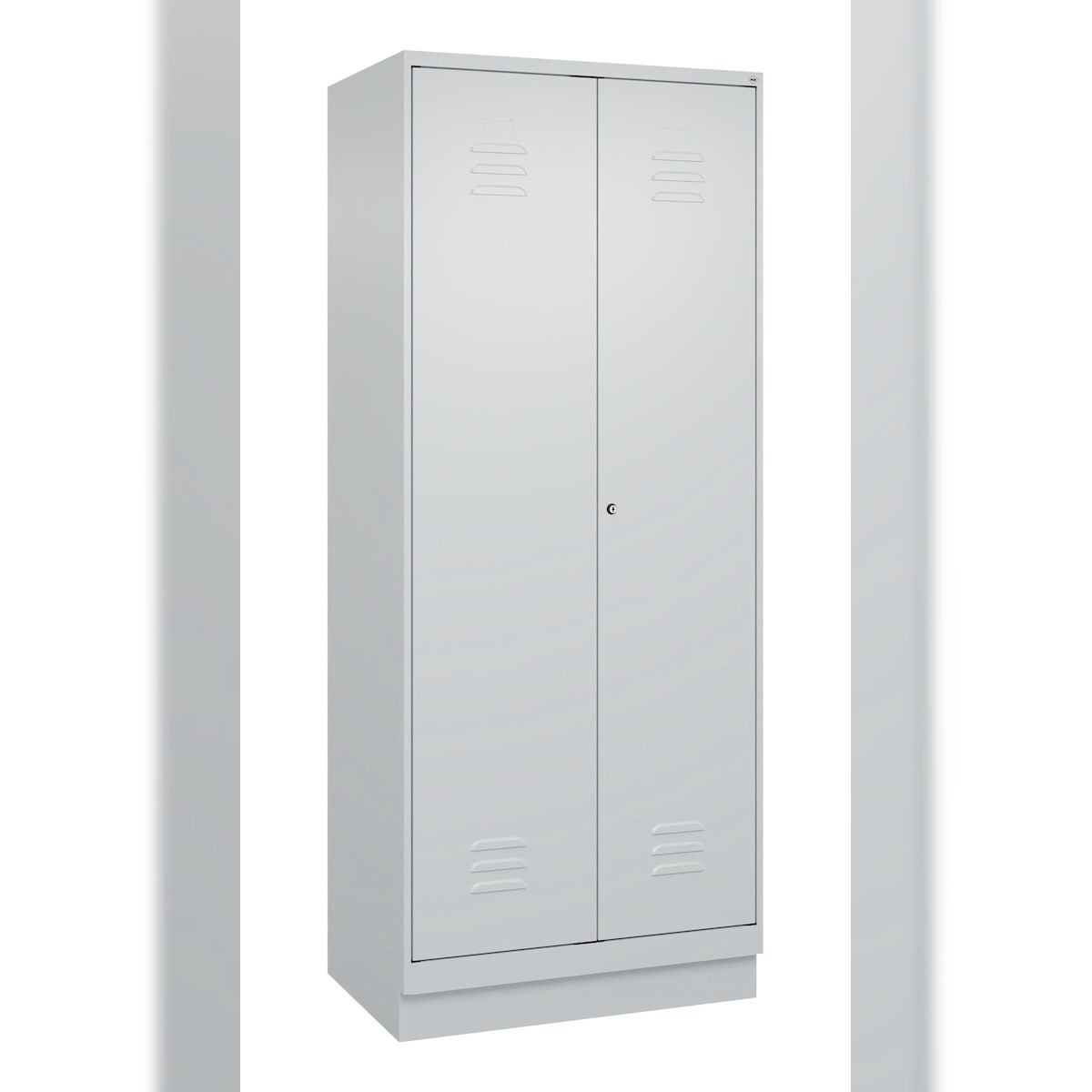 C+P Aufbewahrungs Doppel-Spind Classic PLUS, Sockel, 2 Abteile je 4 Fachböden, HxBxT 195x80x50cm, Zylinderschloss, Hellgrau/Hellgrau von PROREGAL