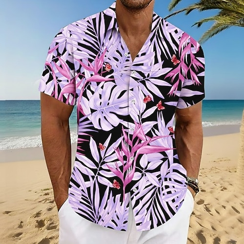 Per uomo Farfalla Foglia di palma Piante Tropicali Camicia hawaiana estiva Camicia con Bottoni Camicia Aloha Manica Corta Hawaiano Ferie Abbigliamento mare Estate Primavera Collo ripiegato Stampa 3D