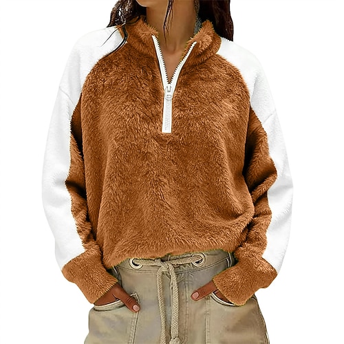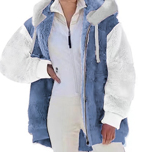Per donna Cappotto Invernale Cappotto Teddy Caldo Confortevole Cerniera Tasca Casual Blocco di colori Vacanza Streetwear Casuale Abbigliamento quotidiano Regolare Con Cappuccio Vestibilità comoda