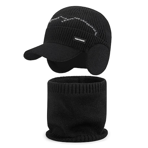 Set unisex di cappello e sciarpa in maglia acrilica, paraorecchie regolabili, vari colori, perfetto per gli sport invernali e le attività all'aperto