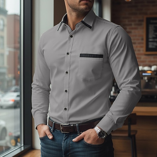 Per uomo Camicia Camicia elegante Camicia con Bottoni Blocco di colori Quotidiano Affari Blu chiaro Nero Bianco Kaki Manica Lunga Collo ripiegato Tutte le stagioni Abbigliamento Patchwork