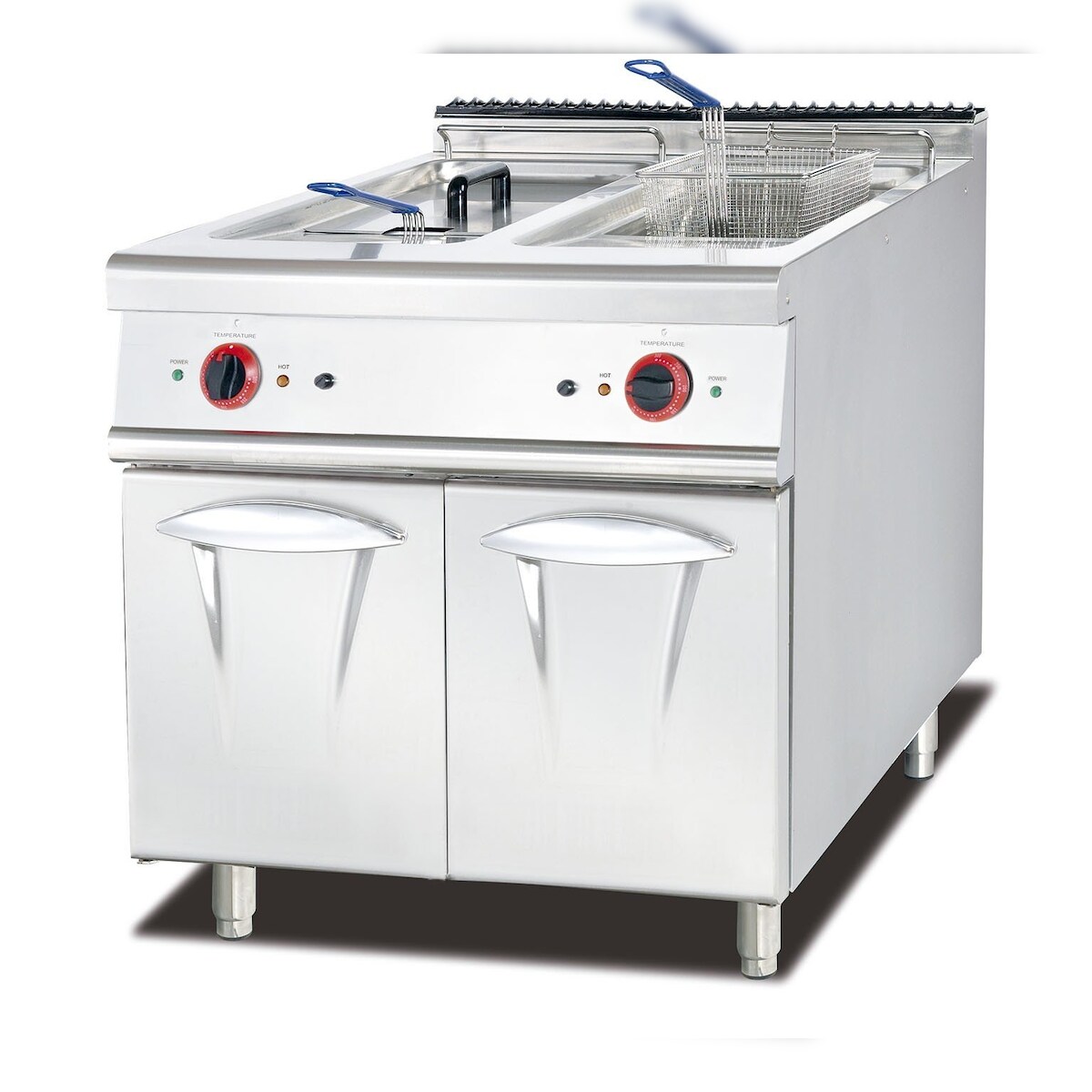 Ristoattrezzature Elektrische Fritteuse mit 2 Wannen im Unterschrank – Edelstahl – Fassungsvermögen 28 Liter + 28 Liter S/70 – 80 x 70 cm