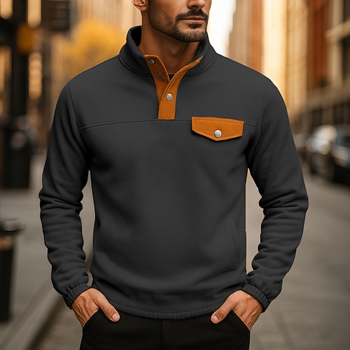 Per uomo Maglia Velluto a coste Felpa in pile Maglione Felpa con cappuccio abbottonata Blu Aalbicocca Nero Verde militare Blu marino Colletto Mao Semplice Patchwork Testurizzato Sport Outdoor