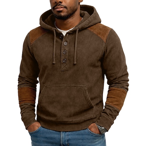 Per uomo Felpa con cappuccio Felpa con cappuccio abbottonata Felpa con cappuccio in pile Marrone Verde Con Cappuccio Semplice Patchwork Blocco di colore Sport Outdoor Casuale Quotidiano Poliestere