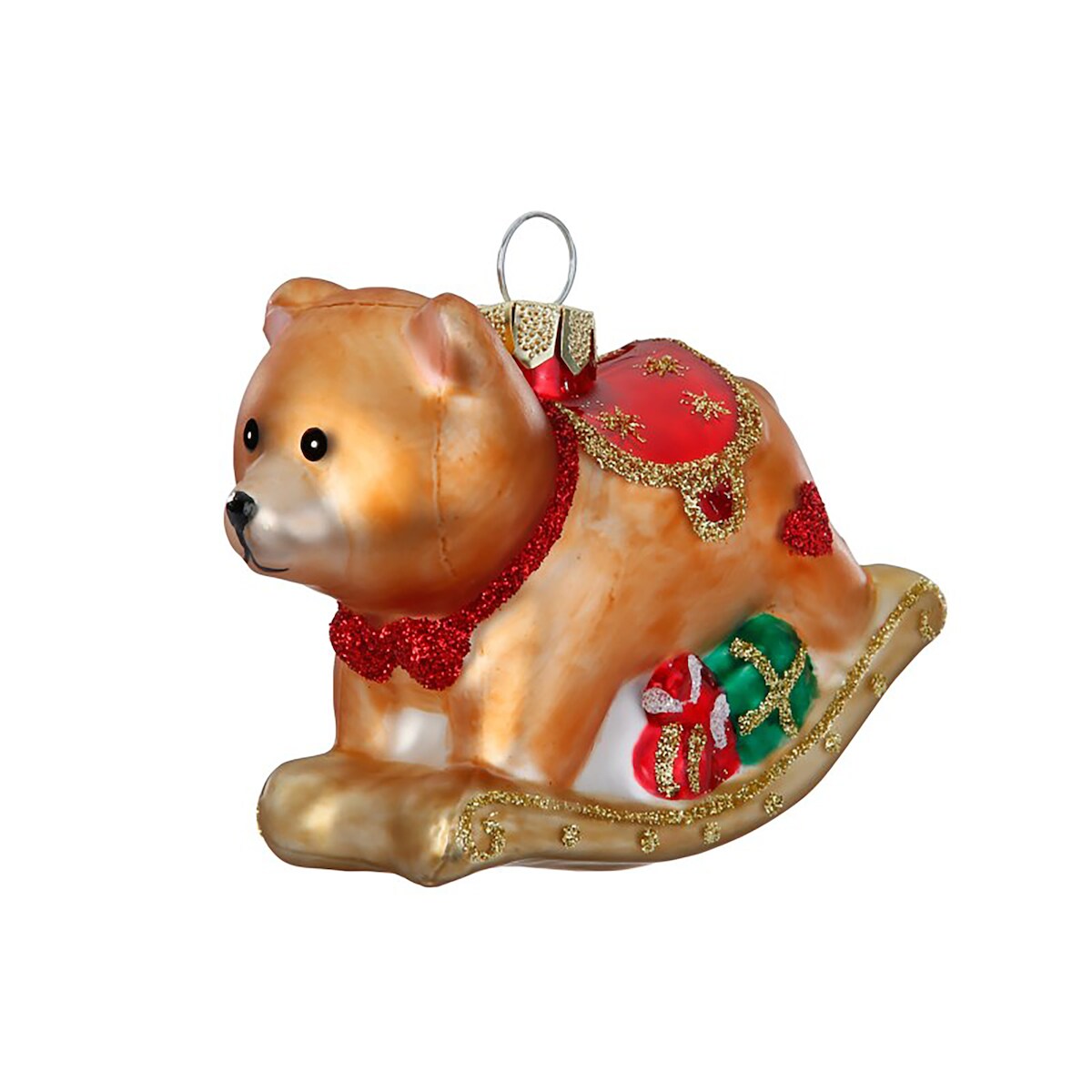 Inges Magic & Goodz Christbaumschmuck Glas 7,5cm Schaukelbär Figur Handbemalt Weihnachtsbaum Anhänger Weihnachten Christbaumanhänger Weihnachtsbaumschmuck Tiere Bär Braun