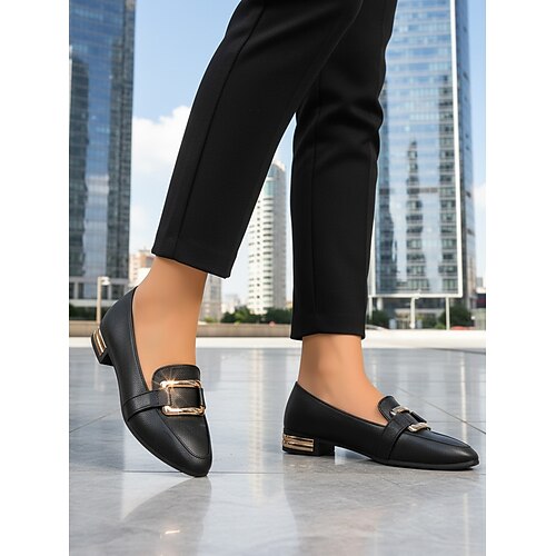 mocassini bassi da donna in similpelle bianca con fibbia dorata: perfetti per l'ufficio, il business casual e gli spostamenti quotidiani