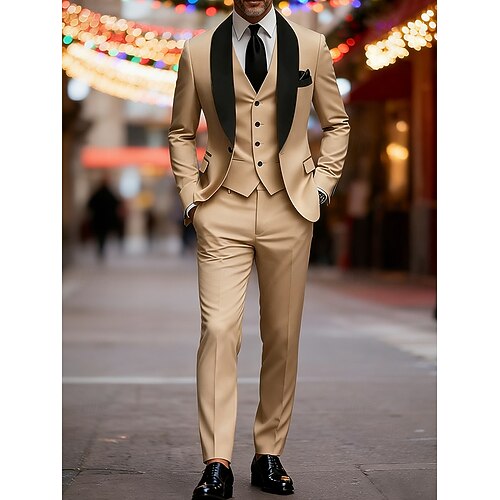 Per uomo BlazerGiletPantaloni eleganti Blazer Completi Affari Cocktail party Ricevimento di matrimonio 3 pezzi Moda Casual Primavera Autunno Poliestere Blocco di colori Tasca Bottoni Confortevole