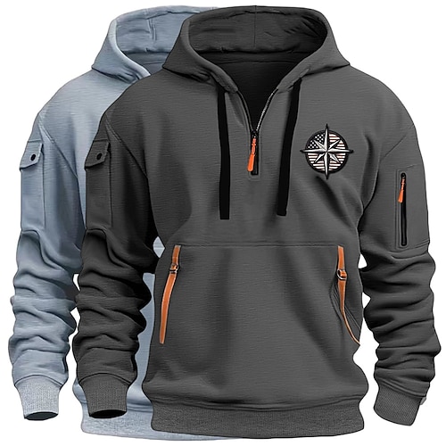 Per uomo Felpa con cappuccio Felpa con cappuccio e zip corta Felpa con cappuccio in pile Felpa con cappuccio tattica Bianco kaki Blu navy bianco Grigio scuro grigio chiaro Blu navy grigio