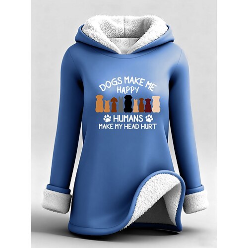 Per donna Pigiama felpato foderato in pile Felpa con cappuccio Lettera Streetwear Casual Manica Lunga Con Cappuccio Top Regolari Streetwear Ferie Uscire Stampato Blu denim Blu marino Blu Blu scuro