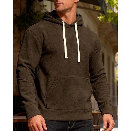 Per uomo Felpa con cappuccio Maglione Felpa con cappuccio in pile Nero Blu marino Cachi Grigio scuro Caffè Con Cappuccio Semplice Coulisse Tasca Sport Outdoor Casuale Quotidiano Streetwear