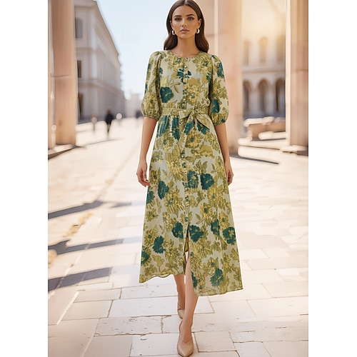 Linea ad A Lunghezza alla caviglia Abito Formale Abiti da Cocktail Elegante Mezza Manica Girocollo Matrimonio Cocktail party Jacquard con Fiocco/Fiocchi