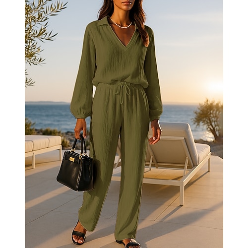 Per donna Abiti da 2 pezzi Tuta da ginnastica lounge Coulisse Tinta unita Completo Abbigliamento Autunno Nero Bianco Lavoro All'aperto Viaggio Leggero Di tendenza Manica Lunga Sport Abbigliamento