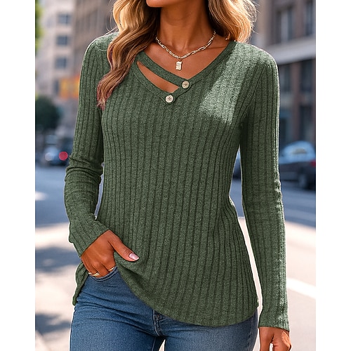 Per donna Felpa da salotto Top casual Manica Lunga Top Athleisure Autunno Scollo a V Tinta unita Di tendenza All'aperto Viaggio Sportivo abbigliamento sportivo Abbigliamento sportivo Nero Bianco Rosso