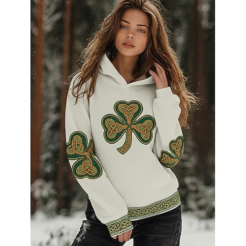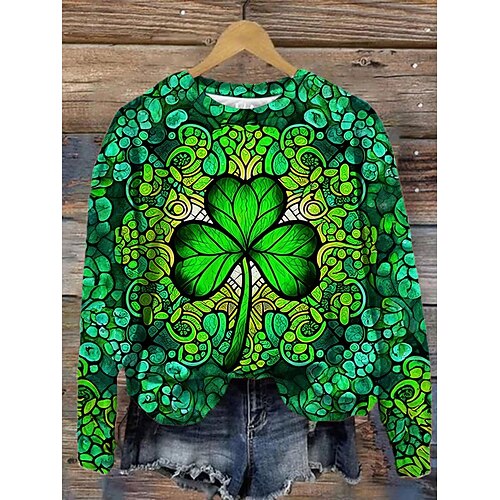 Felpe da donna per San Patrizio grafica trifoglio casual manica lunga colletto rotondo tops regolari casual strada abbigliamento quotidiano stampa nera verde primavera autunno inverno