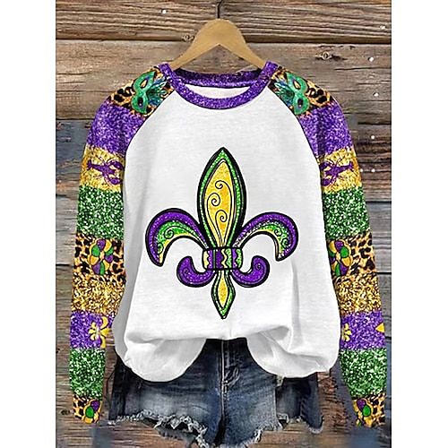 Felpa da Donna Carnival Graphic Geometrica Moda Casual Maniche Lunghe Collo Tondo Tops Regolari Street Dailywear Stampa Gialla Viola Verde Autunno Inverno