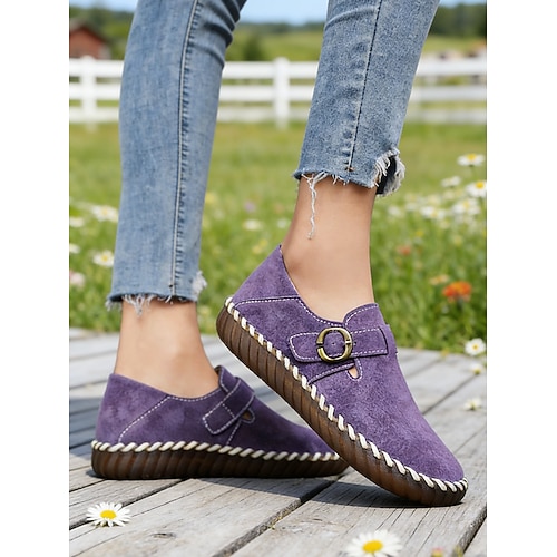 mocassini comodi con fibbia gialla da donna – scarpe morbide e leggere cucite a mano per passeggiate quotidiane, giardinaggio, viaggi e gite rilassate