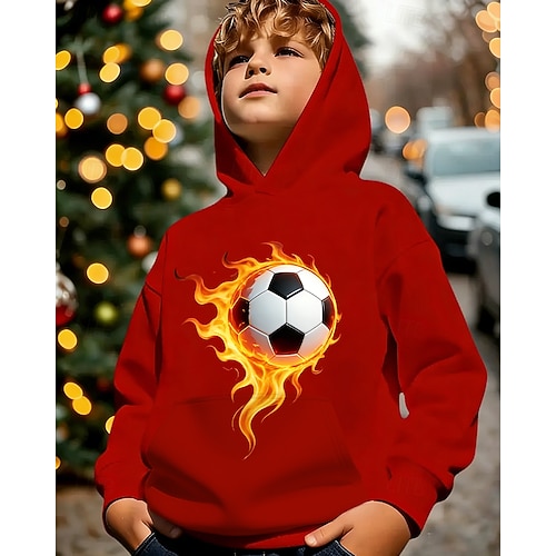 Unisex 3D Grafico Calcio Felpa con Cappuccio Maglione Manica Lunga Stampa 3D Primavera Autunno Sport Moda Streetwear Bambini 4-12 Anni Con cappuccio Casuale Quotidiano All'aperto Vestibilità regolare