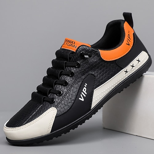 scarpe da ginnastica casual da uomo in pelle marrone con lacci, comode scarpe da indossare a piedi nudi tutti i giorni