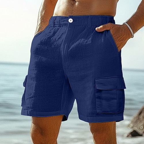 Per uomo Shorts Shorts di Lino Pantaloncini Estivi Shorts da Spiaggia Multi-tasche Gamba Dritta Semplice Comodità Traspirante Lunghezza al ginocchio Quotidiano All'aperto Affari Vacanza Moda Blu