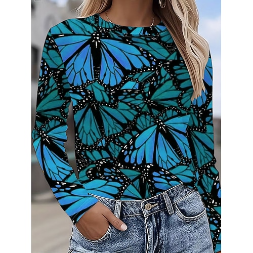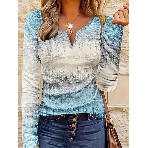 Per donna Maglietta Grafico Sfumatura Vintage Elegante Classico Manica Lunga Collo a V Top Regolari Quotidiano Weekend Stampato Azzurro Primavera Autunno Inverno