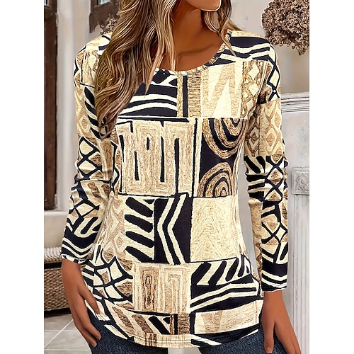 Per donna Maglietta Grafico Geometrico Vintage Elegante Casual Manica Lunga Girocollo Top Regolari Quotidiano Weekend Stampato Blu Giallo Viola Arancione Verde Autunno Inverno