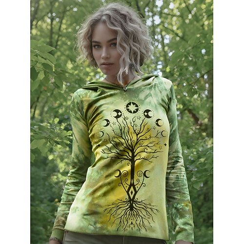 Per donna Maglietta Grafico Piante Vintage Elegante Classico Manica Lunga Con Cappuccio Top Regolari Quotidiano Weekend Stampato Blu Arancione Verde Grigio Primavera