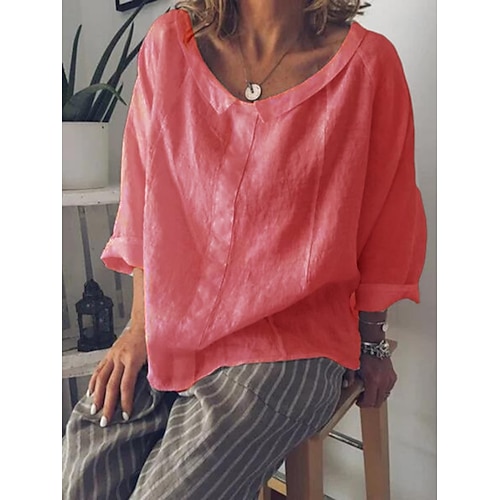 Per donna Blusa Tinta unica Quotidiano Elegante Casual Manica Lunga Girocollo Top Regolari Quotidiano Bottoni Blu Rosa Albicocca Primavera Autunno Inverno