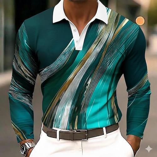 Per uomo Geometrico Golf Polo Manica Lunga Magliette polo Bavero Casual Athleisure Abbigliamento quotidiano Stampa 3D Bottoni Primavera Autunno Inverno Nero Blu Verde