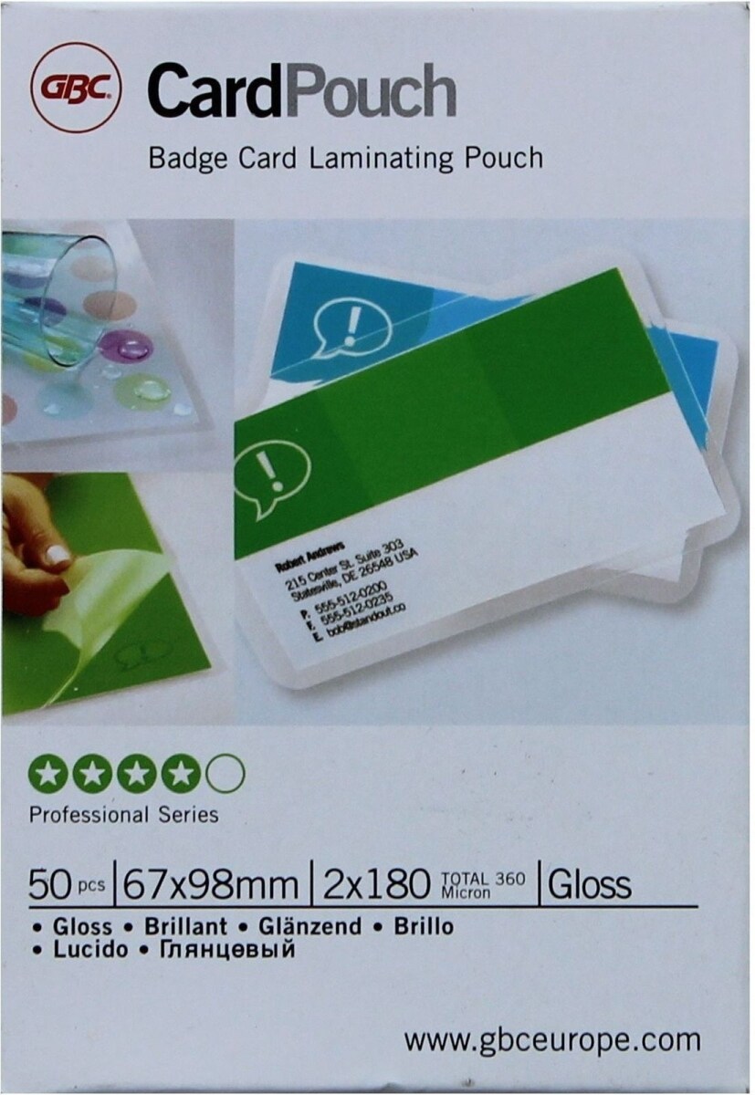 GBC Laminiertasche 67x99mm 180 Micron glänzend VE=10x50 Stück glasklar