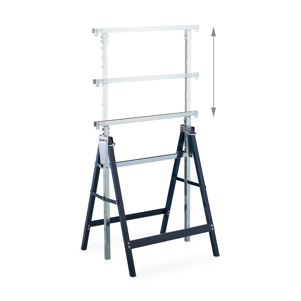 Relaxdays Gerüstbock, 2er Set, 7-fach höhenverstellbar, 200 kg belastbar, klappbar, Unterstellbock, Stahl, blau-silber