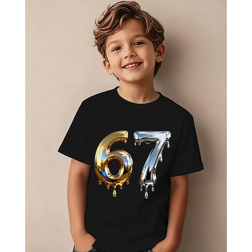 Cotone Bambini Ragazzi Nero Bianco Grafico Gergo divertente 67 Maglietta Blusa Girocollo Manica Corta All'aperto Abbigliamento Quotidiano Moda Streetwear Designer Estate