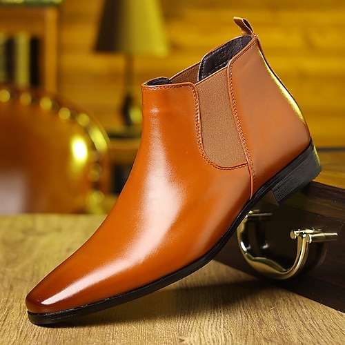 stivaletti Chelsea da uomo in similpelle marrone con motivo coccodrillo, punta affilata e pannelli laterali elastici, eleganti stivaletti alla caviglia per lavoro, feste e occasioni formali