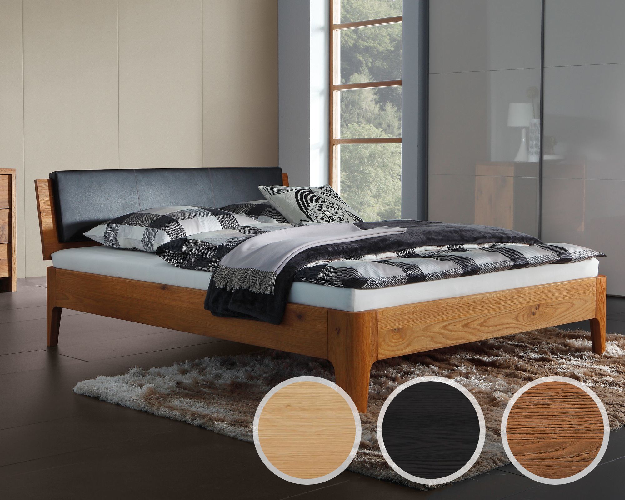 Hasena Oak-Line Massivholzbett Xylo/Varus 180x200 cm Eiche graphit