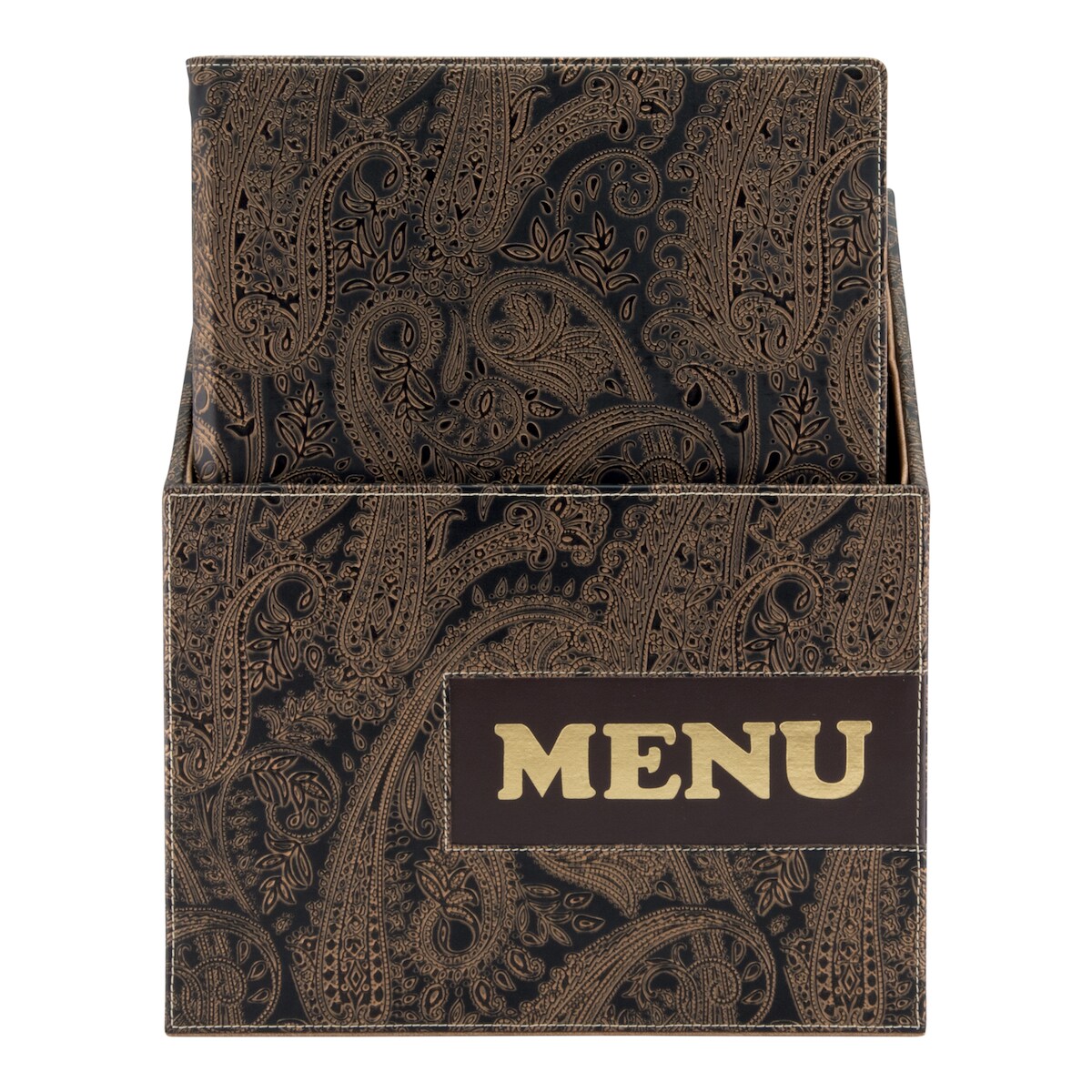 Securit® Menükartenhalter im Lederstil mit Box, Set von 10, doppelte Einlage inklusive zeigt 4xA4