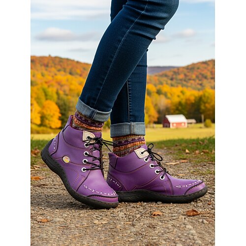 stivaletti da donna in vera pelle verde con lacci – stivaletti bassi in stile rustico da fattoria per il raccolto autunnale, le passeggiate all'aperto e l'abbigliamento casual
