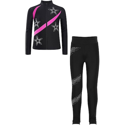giacca da pattinaggio artistico con pantaloni, abbigliamento da pattinaggio sul ghiaccio da donna e da ragazza, elastico, rosso rosa, abbigliamento da pattinaggio per allenamento e competizione,