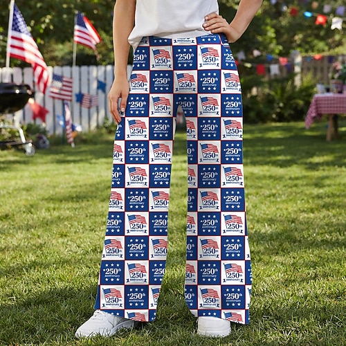 Americano 250 Retrò Vintage Anni '70 Pantaloni Pantaloni a gamba larga Hippie Disco Vita alta Costume Per donna Mascherata 4 Luglio Giorno dell'Indipendenza Semiquincentenario Adulti Pantaloni