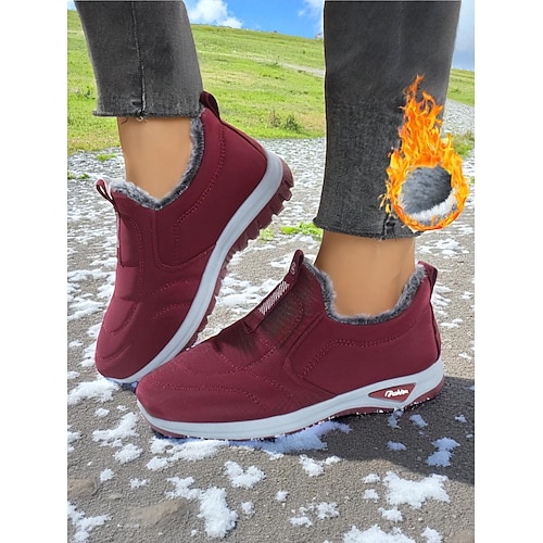 stivaletti invernali impermeabili bordeaux da donna con fodera in pelliccia sintetica: calde ciaspole slip-on per il freddo e l'abbigliamento outdoor