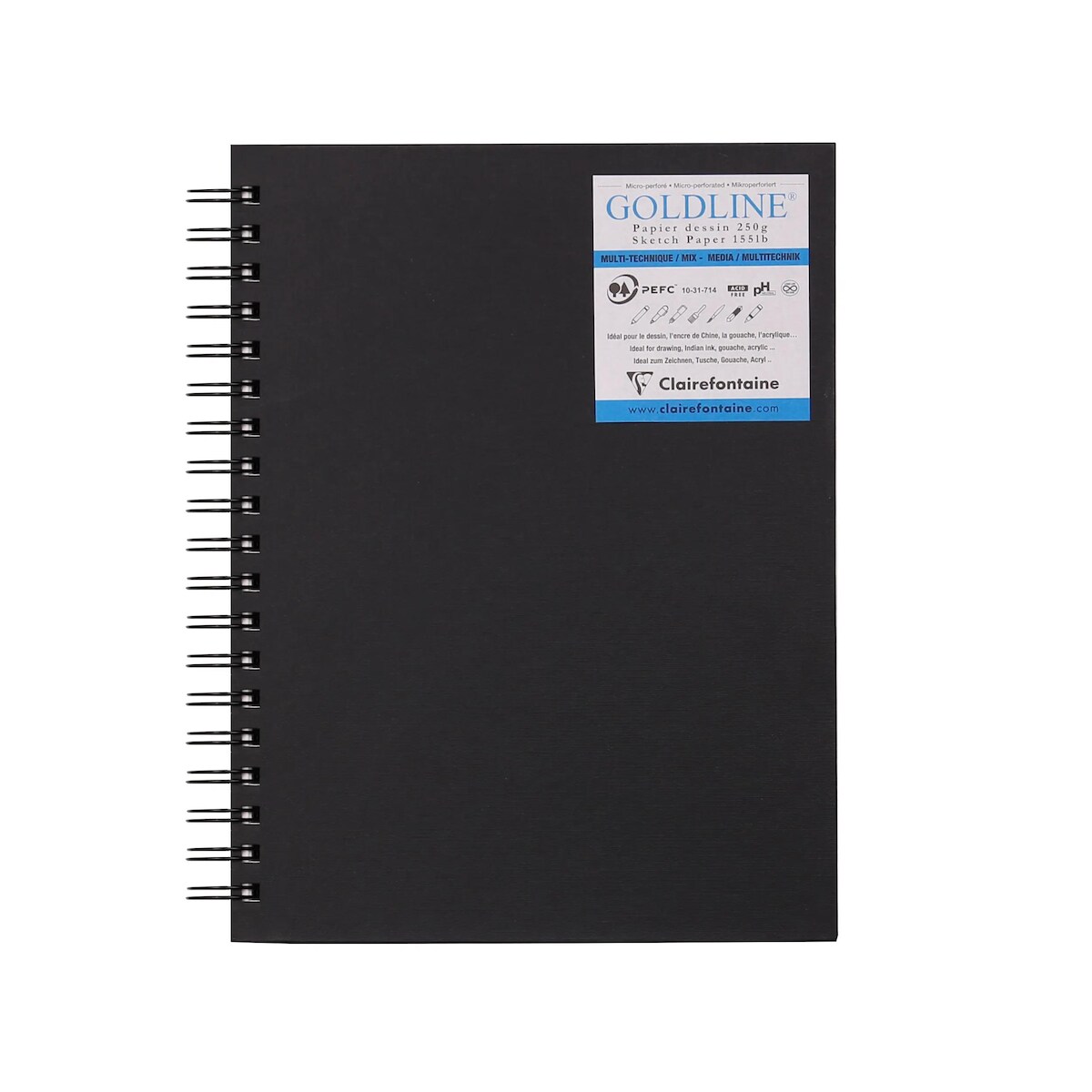 Clairefontaine 5x Goldline, spiralgebundenes Skizzenbuch, 40 Blatt 17 ,8x25x4 cm, 250g weiß - Schwarz 960082C