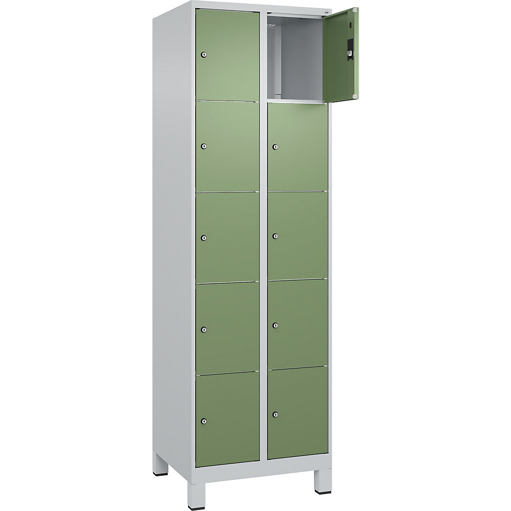 5er-Schließfachschrank Classic PLUS, 2 Abteile, verkehrsweiß, B 600 mm, 10 Fächer, mit Bodensockel C+P