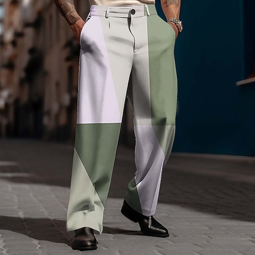 Per uomo Geometrico Blocco di colori Pantaloni Pantaloni Eleganti Pantaloni da Abito Misura del girovita medio Business Casual All'aperto Abbigliamento Quotidiano Pantaloni eleganti con vestibilit